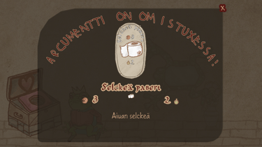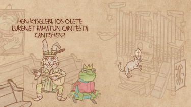 Cansan Saga, or "The People's Saga" is a satirical point & click -game, where you play as the prime minister of Suomaa, a reimagined mediaval Finland. Explore your little tower as guests start arriving for the annual parliamentary dinner, defeat your peers in card battles, and wriggle your way into the hearts of your people!